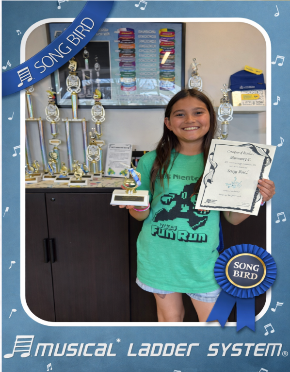 Students were recognized for their achievements in the Musical Ladder System, earning levels such as Songbird and Prima.